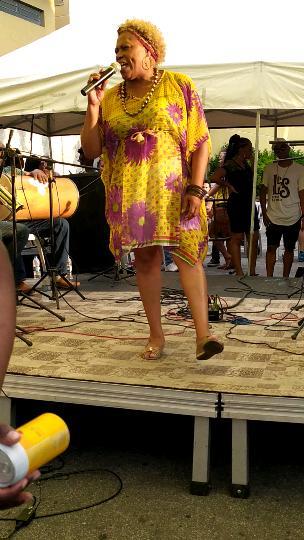 R- Eu gostava de ouvir música. Eu sempre gostei de música e eu cantava, mas eu era criança, cantava com o rádio. Nunca cantei… Eu passei a cantar já depois de velhinha, em 2012, quando eu comecei a cantar profissionalmente. Eu sempre gostei de participar de roda de samba, então no meio da roda de samba, eu sempre ficava de pé, cantando junto com os músicos, mas não cantando profissionalmente, acompanhando na roda. A partir de 2012, que eu comecei a cantar profissionalmente; quando eu fui em um barzinho de um amigo meu e aí tava todo mundo cantando… E o samba, ao invés de ir para cima, o samba estava caindo, estava indo para baixo, eles estavam sentados do lado de fora do bar. E eu falei para ele: “Como é? Vai ficar esse negócio? Tá horrível! O samba, ao invés de estar indo para cima, está indo para baixo!” E aí eu falei: “Desse jeito até eu canto”.