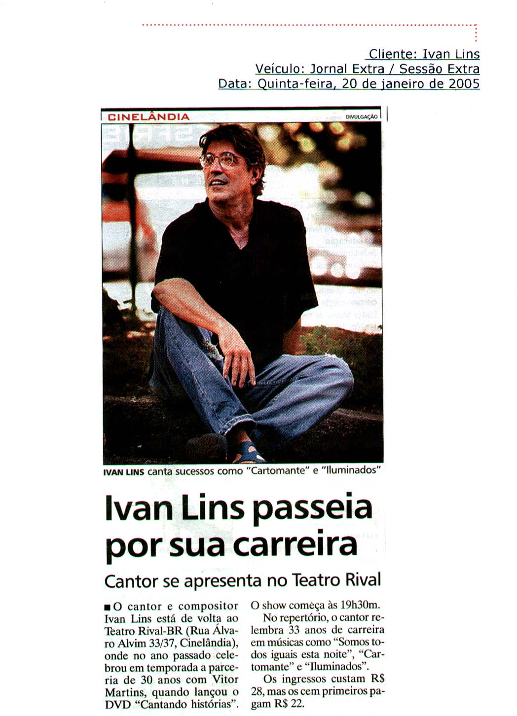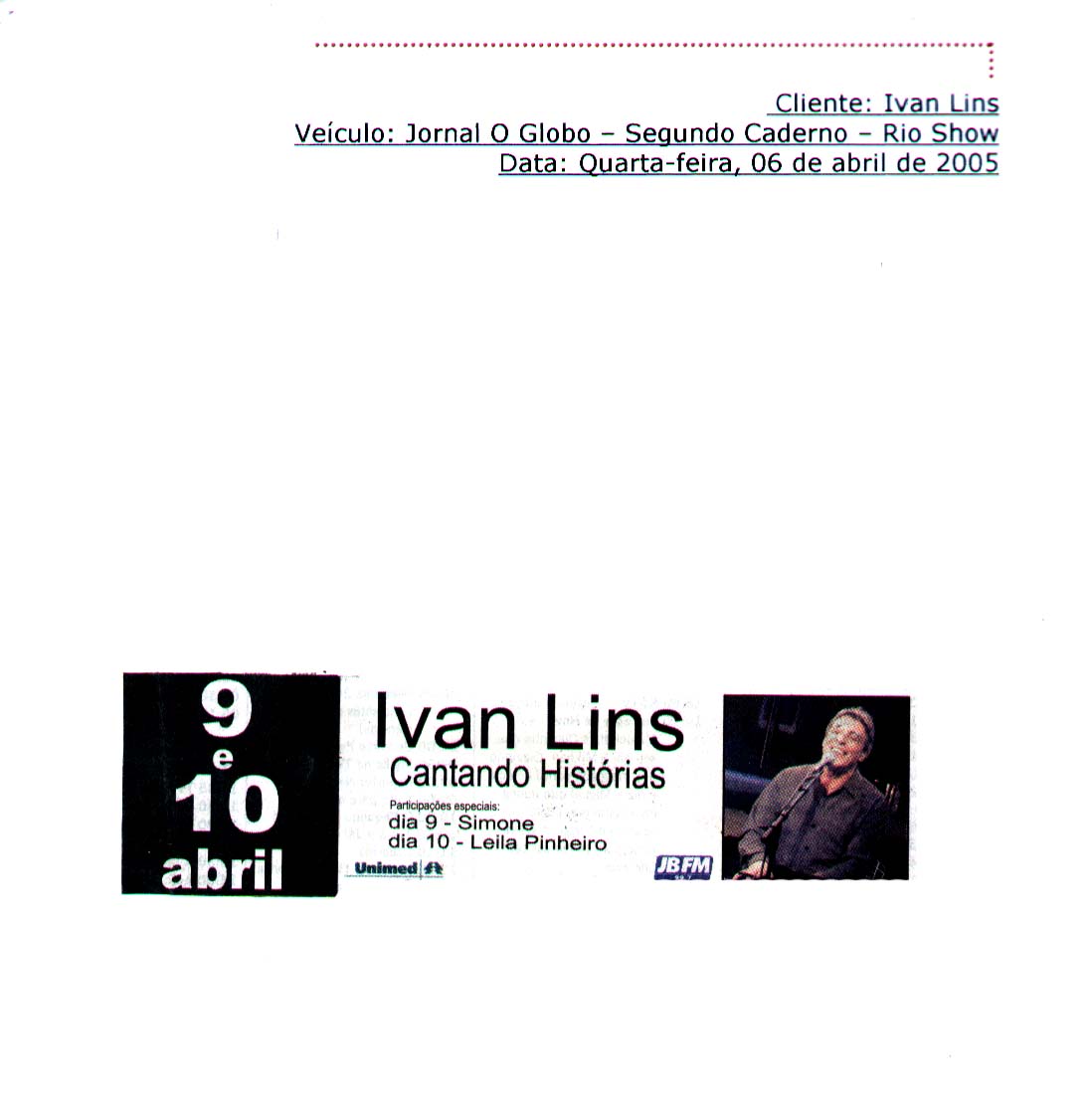 R – E elas também não chegam e não dizem! Você esbarra com as pessoas e aí, assim, através de contatos de pessoas. A Unimed mostrou um interesse muito grande pelo meu trabalho. Talvez porque eu trabalho de uma certa forma, eu acho que eu sou uma pessoa muito transparente, eu passo isso através da minha música, a pessoa que gosta da minha música gosta de mim como pessoa. A minha música reflete exatamente a pessoa que eu sou, eu acho que, de uma certa forma, como eu celebro a vida e como a Unimed também celebra a vida, até com a campanha que está fazendo agora, inclusive ela fala que o melhor seguro de saúde é viver, isso é uma celebração da vida. E a arte, na verdade, no exercer do viver, ela talvez seja uma das coisas melhores que a gente pode ter na nossa vida. E a Unimed é coerente, no momento que ela celebra a vida ela também apóia talvez uma das coisas que mais dão alegria à vida, dão prazer na vida que é a arte, a música em particular. O encontro, na verdade, foi uma confluência de filosofias comuns, na mesma direção, uma proposta deles de celebrar a vida, apoiando exatamente um dos melhores prazeres da vida que é a arte, uma coisa que a Unimed já faz há muito tempo. E essa forma como é lidado com isso. Quem conhece o Celso, a paixão que ele tem pela vida é tão forte e, talvez, até pelo fato da gente quando se conheceu assim, foi um eeeehhhh, aquelas coisas de torcedor, é na hora que a gente está exteriorizando e, na verdade, dando até uma limpada porque muitas vezes você torce é para se aliviar. Então, muitas vezes quando dizem assim: “o nosso time do coração”, muitas vezes pode prejudicar o nosso coração ou como pode, também, salvar o nosso coração. Nesses momentos que o coração está em jogo, a saúde está em jogo também, e quando você encontra pessoas que estão completamente olhando a vida de uma forma realista, mas de uma forma totalmente positiva, eu acho que o encontro não tem como dar errado, é impossível, as coisas vão se somar. O trabalho que a Unimed faz em apoio à arte é uma coisa maravilhosa, eles fazem um trabalho espetacular nesse sentido, e soma-se a isso esses pequenos encontros, essas energias, essas coincidências, essas confluenciazinhas de sentido, de olhar a vida, como enxergar a vida e até gostar de música e torcer para o mesmo time, uma coisa assim. Se bem que isso é uma coisa mais particularizada pelo fato de que o Celso é tricolor e eu também sou tricolor e, dentro da Unimed, evidentemente tem torcedores dos clubes de todo o Brasil e do mundo, mas tem um monte de tricolores, entendeu? [risos]