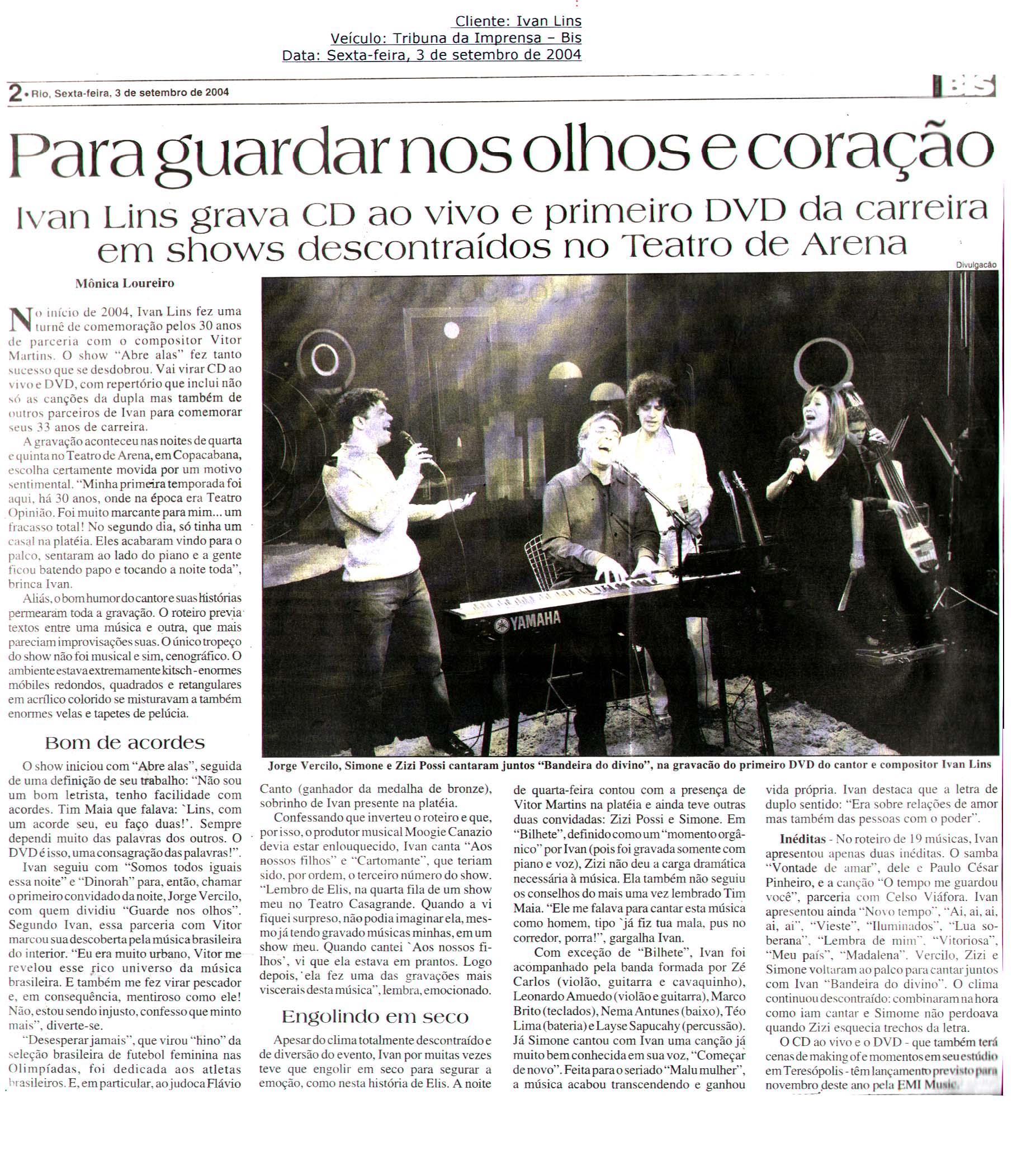 R – Na verdade, é maravilhosa. É sempre assim, você levar sua arte, cantar a música do seu país para outros povos. Ensinar um pouco de Brasil, da coisa boa do Brasil, o que o Brasil nos ensina de melhor, porque o Brasil realmente é o país da música, talvez produza a música mais rica do mundo, miscigenação de raças e tudo, é um país basicamente ecumênico, por índole.
