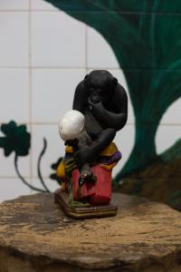 R/- Mais antigo teve, teve um que eu… Da época que eu anotava meus sonhos… Teve um sonho que eu estava num bairro muito arborizado, havia uma perua kombi com vários quadrinhos, venda de gravuras pendurada por toda essa kombi, e essa kombi tava parado em frente a uma casa para qual eu estava me dirigindo. Aí eu entrei nessa casa, era uma sala imensa, com duas piscinas, uma piscina tinha água preta cor de café escuro, e a outra piscina era completamente cristalina e linda, linda, muito bonita, e a outra negra, negra, negra a água. Veio um macaco enorme em minha direção a hora que eu me deparei com essa sala com as duas piscinas, e esse macaco veio em minha direção não agressivamente, parecia que ele me conhecia, só que ele se desequilibrou e caiu nessa piscina escura de água escura. A hora que esse gorila caiu nessa piscina veio uma cobrona em direção a ele e eu dei a mão pra ele, e a hora que ele pulou para sair da piscina nós dois nos desequilibramos e caímos na piscina de água cristalina. Essa cobrona saiu da piscina escura, e conforme ela entrou nessa piscina clara ela foi virando a água, e aí eu acordei. E esse sonho era, sei lá, eu tenho gravado porque eu escrevi e o que eu escrevo fica melhor registrado.