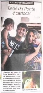 Destaque para a reportagem na página do Jornal Extra do Globo sobre o nascimento do Noah, com o título "O Bebê da Ponte é carioca".