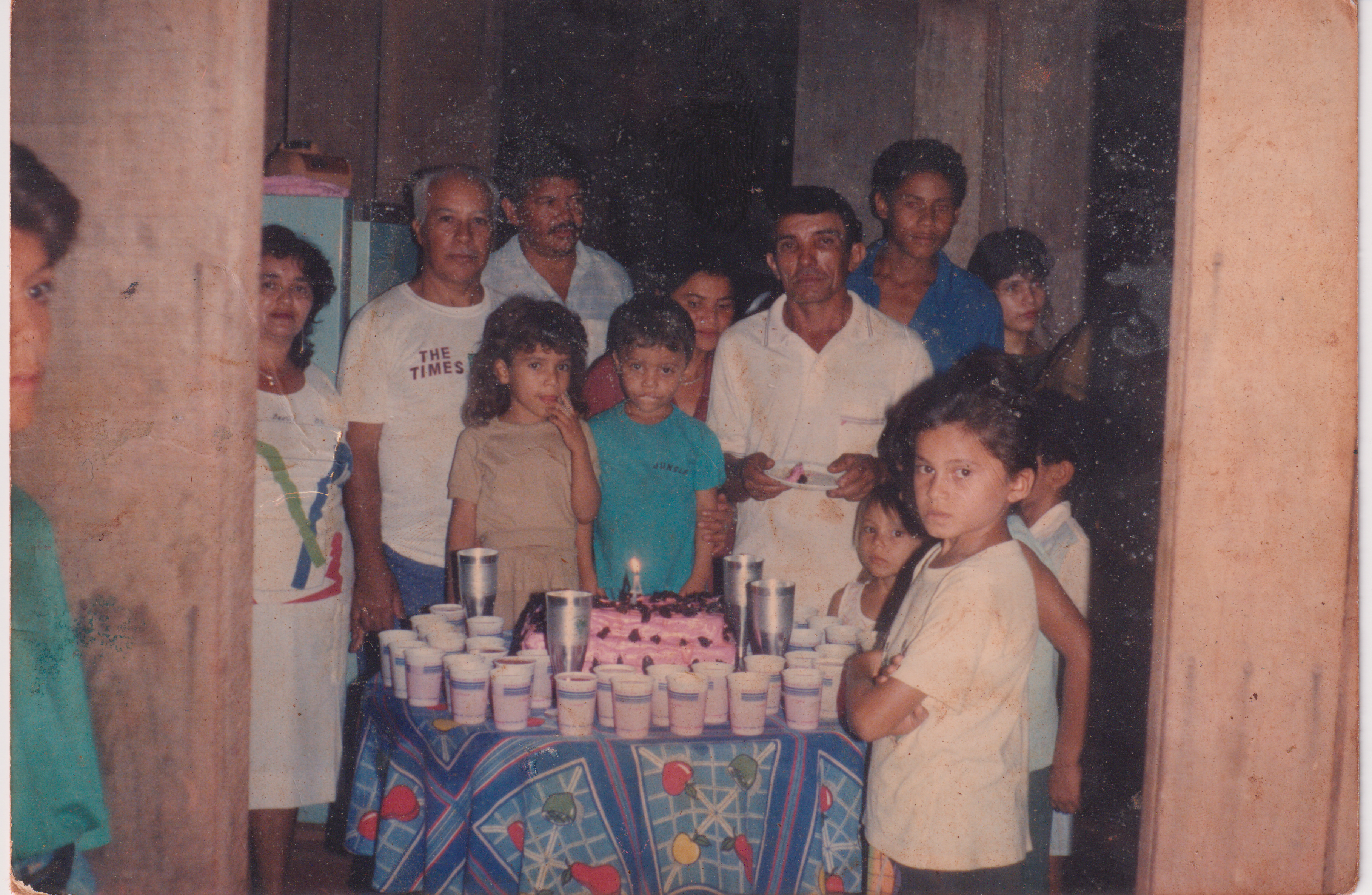 R - Só tenho dois. Eu criei cinco filhos adotivos, morreu três, tem dois vivo. Depois que eu criei quatro adotivos, foi que eu vim ter a minha primeira menina, que é a Thalita, em 1986, dia 2 de agosto de 1986. Aí, o segundo parto foi o Jhone que já foi em 1987. Criei a Andrea, que adotiva também, essa tá lá em Bacabal, não, no Largo da Pedra, que ela está morando. Bem legalzinha minha filha. E a outra tá aí no mundão, que eu não sei por onde ela tá. Mas os meu dois filhos legítimos tá aqui perto de mim, graças a Deus! Meus dois filhos legítimos, é a Thalita, que é a Regina e o Jhone, que é o Jhone Cowboy.
