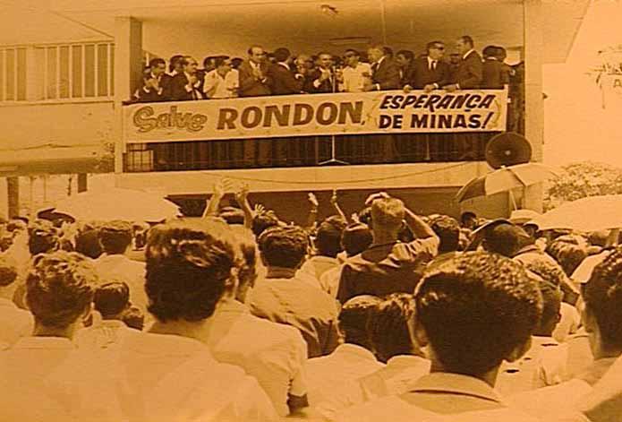 A disputa para o primeiro cargo eletivo deu-se naturalmente. Houve a abertura política e as eleições para presidente da República e para a Constituinte federal. Em Uberlândia, meu partido apresentou um candidato para a Constituinte, que foi o Dr. Jacy de Assis. Ele não se elegeu, ficou como suplente, mas não conseguiu se eleger para a Constituinte. E eu, que já era presidente do Diretório Acadêmico e já tinha aquela vocação política muito marcante na minha vida, fui lembrado pelos próprios colegas de turma, que, como eu, também aspiravam ser candidato a deputado estadual e a Constituinte. Eu, então, tinha de tentar aqui em Uberlândia. Vim e visitei os amigos. O meu sogro, o senhor Guiomar de Freitas Costa, foi o presidente da UDN na primeira eleição aqui. Na segunda, quando fui eleito, já era o Sr. João Rodrigues de Castro. O Varão, o Sandro Varão, também aqui de Uberlândia, um homem da melhor estirpe, da melhor formação, como meu sogro, falou: "Ah, Dr. Rondon, o Dr. Jacy não foi eleito e ele também está aqui em Uberlândia há pouco tempo. Vamos escolher o senhor, que é um filho daqui, de família daqui, estudou aqui, nasceu aqui. E vai ser o primeiro deputado por Uberlândia". Eu tive sorte e fui para a Constituinte Mineira. Não foi fácil chegar lá porque cheguei inicialmente como suplente, mas com Milton eleito, fui convocado logo, porque muitos saíram para ser secretários de Estado. Minha votação principal foi em Uberlândia, que tinha apenas 11 mil eleitores. Hoje, são 200 e tantos mil.